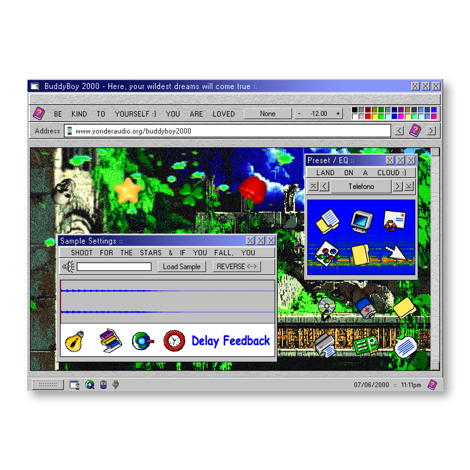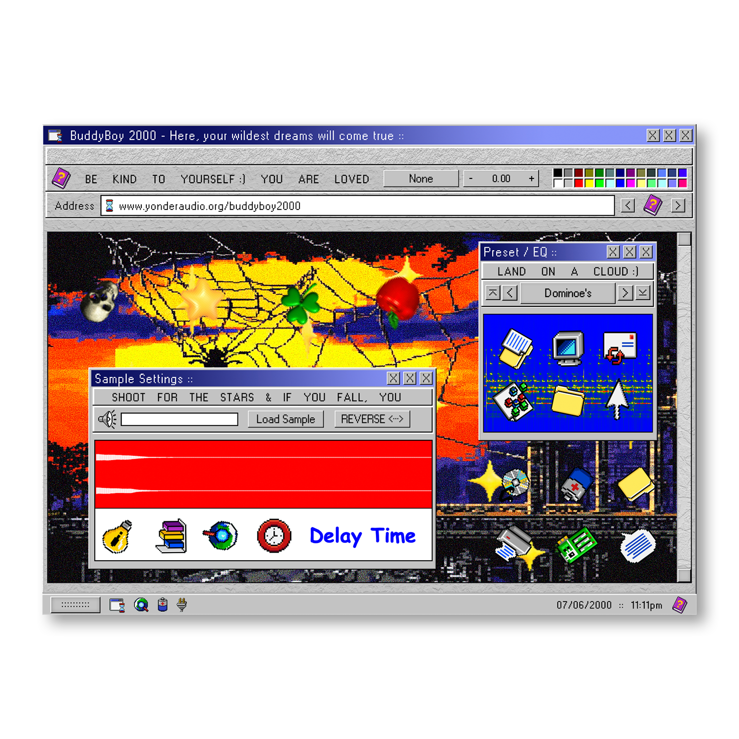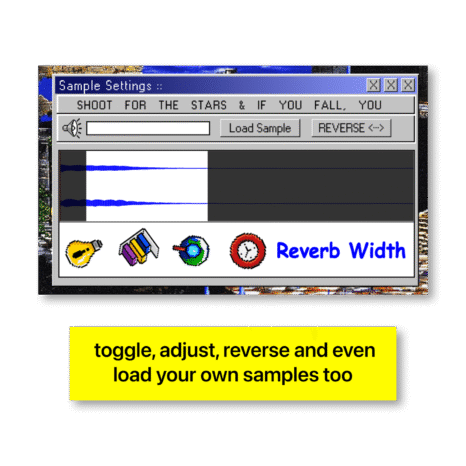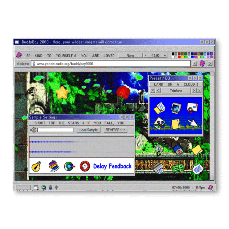 Buddyboy 2000 is a behemoth of a sampler. It comes stocked with 200 custom sample presets and virtually limitless sound-manipulation options. You’re never gonna run out of ways to create a new auditory sensation with this thing. All 200 sounds were carefully selected and sampled from vintage keyboards, analog synths, wacky instruments, field recordings, the human voice, and even the sound of my washing machine run through 20 layers of processing. The list goes on and on. It was a blast to build and even more of a blast to tinker with. The interface is fully customizable, and you can save and load your own custom samples!.